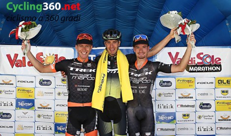 Zamboni era in testa assieme ad altri due biker, sapevo di star bene ma il primo GPM mi ha tagliato fuori, non ho rischiato in discesa sapendo che era l’ultima parte dove si decideva il tutto. Ho sofferto tantissimo, ma andando a tutta sino all’arrivo sono riuscito a farcela”. Secondo, a sorpresa, il mantovano Leonardo Tabarelli, bravo a rimanere a contatto dei primi sino all’ultimo e concludendo la propria performance in 2:15:53, mentre è terzo Andrea Zamboni (2:17:22), il quale non sfata il mito che lo vede dominante in salita e in difficoltà in discesa, perdendo terreno proprio in questi tratti, che tuttavia alla Val di Sole Marathon non hanno abbondato rispetto ad ascese degne degli scalatori più arditi.