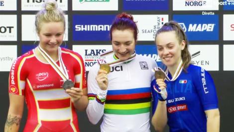 Mentre la Pirrone continua con il suo passo, la Paternoster, dopo aver inseguito l’ennesima controattaccante prova a forza e a staccare tutte. Gli rispondono le francesi, che riportano sotto il gruppo e mettono in difficoltà l’azzurra, brava, però, nella discesa, a recuperare. A quel punto il vantaggio della battistrada è ridotto al minimo. La Pirrone ha il merito di crederci ancora e riesce nuovamente a mettersi a distanza di sicurezza, sfruttando l’ennesimo rallentamento delle inseguitrici anche grazie al lavoro di stopper della Paternoster. Arriva sotto lo striscione a braccia alzate e solitaria, mentre nella volata del gruppo Letizia Paternoster conquista un ottimo bronzo, che premia la sua determinazione e il lavoro fatto. “Ho terminato con i crampi, esausta, ma veramente felice. Non pensavo.. non credevo”. Poche ma chiare parole quelle della bicampionessa del mondo che consegnano all’Italia un nuovo record e la consapevolezza che il futuro del ciclismo femminile, con queste ragazze, è assicurato.