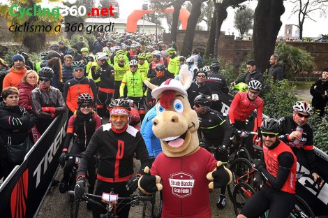 Siena, 4 marzo 2018 – Puntuali, alle 8.30 nella splendida cornice della Fortezza Medicea, i 5.000 protagonisti della terza Gran Fondo Strade Bianche by Trek, sono partiti sotto un cielo più clemente di quello dei giorni scorsi. Nel corso della mattinata anche qualche raggio di sole ha reso la giornata più agevole ai partecipanti. Al via numerosi volti noti: il Campione Mondiale e Olimpico Paolo Bettini, l’altro iridato Alessandro Ballan, la squadra della Trek Segafredo – che ieri ha corso la gara professionisti – e con il pettorale numero 1, il Sindaco di Siena, Bruno Valentini.