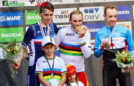 Lo spagnolo sale sul gradino più alto di un mondiale a 38 anni, dopo 4 bronzi e 2 argenti. Alle sue spalle il francese Bardet e il canadese Woods. L’Italia si consola con il piazzamento di uno straordinario Moscon.