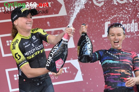 La seconda classificata Annika Langvad ha detto: “Sono sotto shock! Questa è la mia prima gara a questo livello se si esclude il Campionato del Mondo dello scorso anno. Non posso crederci. È pazzesco. È stata una gara veramente dura. Sul quarto tratto di strada bianca mi sono chiesta come avrei fatto a finire… Ho poca esperienza qui. Ho iniziato a provare a correre più intelligentemente e salvare la gamba. Alla fine, le mie compagne di squadra hanno semplicemente lavorato da eroine. Si sono sacrificate per me. Sentivo una responsabilità molto grande sulle mie spalle, è la mia prima gara su strada con la squadra. Sull’ultima salita, accanto a Katia [Niewadoma], ho pensato a tutto il lavoro che le mie compagne di squadra avevano fatto per mettermi in quella posizione, quindi ho dato tutto e sono davvero felice!”.