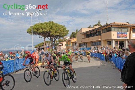 Dopo circa 40km di gara alcuni dei favoriti accusano un calo fisico ed al comando troviamo la coppia Kerschbaumer e Stosek, con al loro inseguimento Mensi, Medvedev e Porro. Dopo circa 65km, ossia dopo aver passato i famosi scalini della spiaggia di Naregno ed essere risaliti verso Capoliveri su asfalto, al passaggio dal famoso “Muro della Leggenda”, Stošek é solitario al comando, inseguito da Kerschbaumer, attardato da una foratura, poi Juri Ragnoli in rimonta, seguito da Rabensteiner e Cominelli.