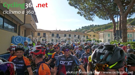 Quindi, la mattina della gara, faccio anch’io un’abbondante colazione che mi servirà per affrontare i 3000 metri di dislivello, metto la bici sull’auto e mi dirigo a Capoliveri. Una volta parcheggiata l’auto (per fortuna nonostante il paese sia piccolo, ci sono ampi parcheggi che lo circondano) mi dirigo in griglia dove posiziono la mia bici per poi andare a fare subito qualche scatto ai professionisti delle ruote grasse.
