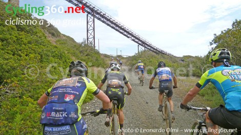 Dopo questa prima asperità, che conviene affrontare molto regolare e al cui culmine è posto il Gpm, inizia tutto un saliscendi in cui si alternano single-track a strade bianche, sentieri lungo la scogliera a tratti di asfalto che ci portano dall’Innamorata al Monte Calamita, dove si attraversano le vecchie miniere.