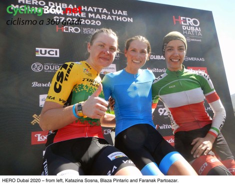 Prima tappa del Circuito Hero World Series, la Hero Dubai prevedeva una gara di 60 km con circa 1600 mt di dislivello : il caldo inedito per i nostri atleti – abituati alle più rigide temperature del Nord Europa- ha messo a dura prova la resistenza fisica nelle fasi clou di gara : è andata vicino al successo la campionessa lituana Katazina Sosna, seconda dietro alla slovena Pintaric; così come Peeter Pruus ha conquistato un ottimo argento alle spalle del campione mondiale Leonardo Paez.