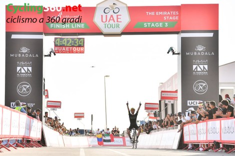 Jebel Hafeet, 25 February 2020 – Adam Yates has won Stage 3, the Emirates Stage, of the second edition of the UAE Tour, ahead of Tadej Pogacar and Alexey Lutsenko. Adam Yates is the new leader of the GC and was awarded the Red Jersey.
