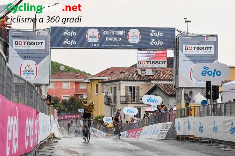 Il neozelandese attacca a 7.5 km dal traguardo e trionfa a Barolo, davanti a Ulissi e van der Poel.