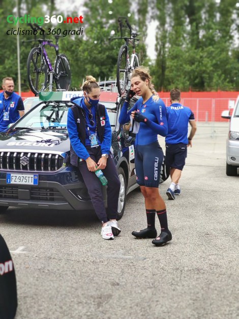 Non si tratta di una prova semplice, in quanto il percorso da 31.7 km scelto dagli organizzatori, richiede abilità tecniche ma anche il cambio di ritmo circa a metà prova, su un tracciato ondulato che non permette mai di abbassare la guardia. E se all’interno dell’Autodromo ci sono le ragazze sui rulli, con le mascherine ma con gli occhi capaci di sorridere, ecco che fuori il pubblico sul percorso non manca, pronto a scandire le pedalate con gli applausi e alle atlete far sentire meno la lontananza imposta dalle regole anticovid.