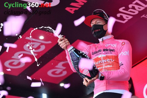 Wilco Kelderman (Team Sunweb), giunto in quinta posizione al traguardo a 2’18” dal vincitore, è il nuovo leader della classifica generale e veste la Maglia Rosa.