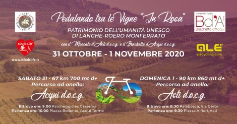 Grazie al Consorzio Tutela Brachetto d’Acqui e Consorzio dell’Asti DOCG e Paesaggi Vitivinicoli Langhe, Roero e Monferrato.Due giorni di sport e natura con due percorsi aperti a tutti ad anello disegnati tra le bellezze tra le province di Asti, Alessandria e Cuneo di 70 km circa (ad Asti previsto percorso anche 90 km) con ristori “individuali” previsti grazie alla collaborazione di NAMEDSPORT> e Acqua Sant’Anna Sicurezza sanitaria grazie a CRI – Comitato di Acqui Terme e Croce Rossa Italiana – Comitato di AstiVi aspettiamo il 31 ottobre ad Acqui Terme (partenza ore 10) e 1 novembre ad Asti (partenza ore 9.30) per la terza edizione di Pedalando tra le vigne “in rosa” di Langhe, Roero e Monferrato.