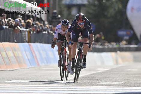 Sulla linea del traguardo l’inglese ha preso 10″ di abbuono contro i 6″ dell’australiano che aveva però battuto il corridore della Ineos Grenadiers al traguardo volante e preso 3″ di abbuono contro i 2″ di Geoghegan Hart.