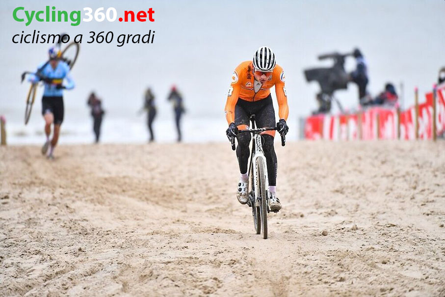 Ostenda (Belgio) 31 gennaio, 2021. Un Mondiale che vedeva come favorito fin dalla vigilia MVDP che parte subito al comando seguito dal belga Van Aert. I due si avvantaggiano subito sul resto del gruppo inseguitore dominato dalla macchia celeste delle maglie dei belgi. Intruppato sulla prima salita, l’inglese Pidcock, anch’egli dato tra i favoriti, ma non a suo agio sulla sabbia, che da sempre, per tradizione, è il terreno ideale dei belgi e degli olandesi.