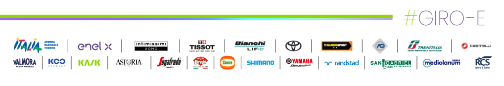 ENIT sponsor Maglia Arancio; Enel X sponsor Maglia Viola; ACI sponsor Maglia Rossa; Intimissimi Uomo sponsor Maglia Bianca; Cuore sponsor Maglia Gialla; Trenitalia sponsor Maglia Verde-Ride Green; Toyota Official Car; NamedSport Official Nutrition; Yamaha Official Scooter; Tissot Official Time Keeper; Kask & Koo Official Supplier; Astoria Official Wine; Valmora Official Water; San Gabriel Official Beer; Castelli Official Jersey; Shimano Official Supplier.