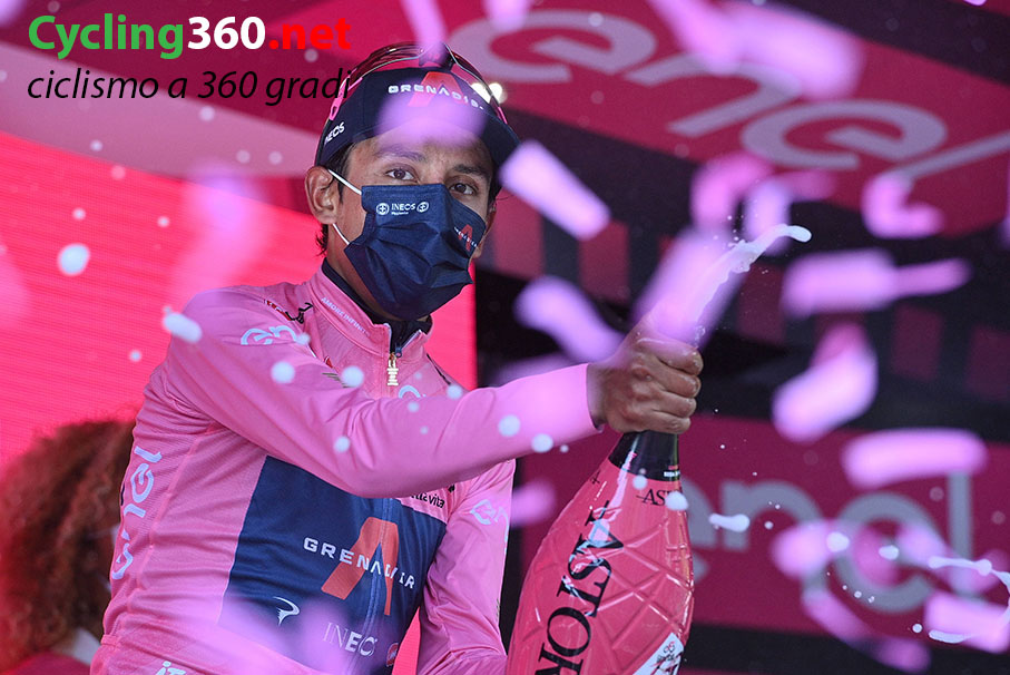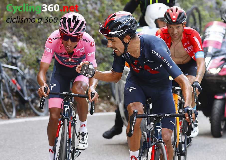 Egan Bernal (Ineos Grenadiers) è arrivato al traguardo dopo 1’23” e ha conservato la Maglia Rosa di leader della classifica generale con un vantaggio di 2’21” su Damiano Caruso (Bahrain Victorious) e 3’23” su Simon Yates (Team BikeExchange).