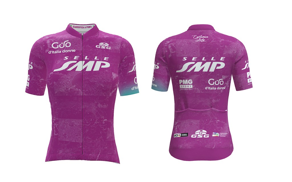 la Maglia Ciclamino (per la prima classificata della Classifica Generale Individuale a Punti) da Selle SMP, azienda italiana che ha rivoluzionato il concetto di sella per bicicletta, simbolo di qualità, ergonomia e innovazione;