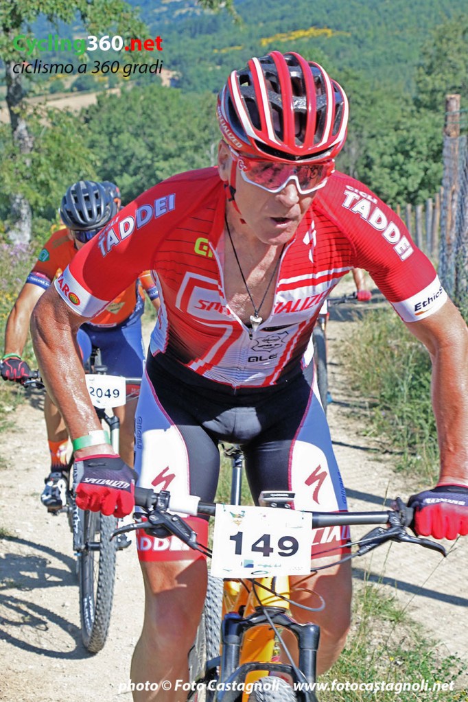 Il primo ad accendere le micce poco prima del culmine della prima salita, una volta usciti da Bibbiena, è stato proprio Francesco Casagrande che con la sua enorme esperienza da ex corridore professionista su strada ha provato, fin da subito, a fare selezione. La manovra gli è infatti servita per portare via una fuga a quattro, quella in cui si trovava l’altro ex pro su strada e suo compagno di squadra Francesco Failli, il giovane Giacomo Sbrocca e Nicola Corsetti.