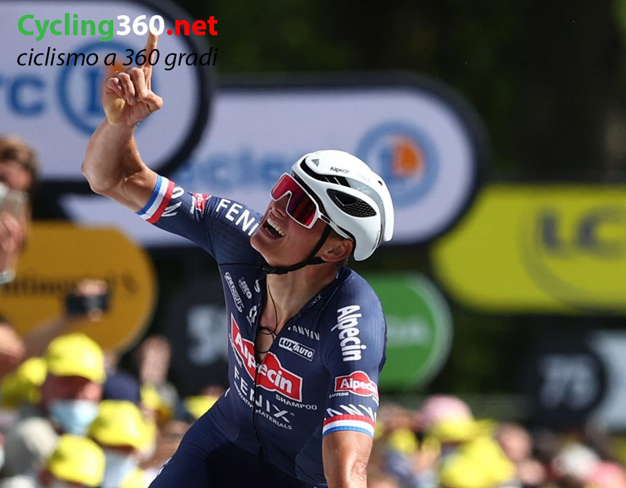 Beffato ieri dalla zampata di Julien Alaphilippe, l’olandese Mathieu Van der Poel si è preso vittoria e maglia gialla nella seconda tappa del Tour de France, la Perros Guirec-Mur de Bretagne Guerledan, di 183,5 km. Un successo meritato, e un omaggio al grande nonno, Raymond Poulidor, salutato sotto lo striscione del traguardo con un dito alzato al cielo da dove lo guardava l’ex campione francese – scomparso a 83 anni nel novembre 2019 – che nonostante le tante vittorie non era mai riuscito a indossare la maglia gialla Nella tappa bretone caratterizzata da sei gpm e da un arrivo in salita simile a quello dell’esordio, Van der Poel ha attaccato due volte: una per conquistare il bonus di otto secondi in cima alla prima scalata al Mur de Bretagne, l’altra per ottenere una storica e commovente vittoria di tappa.