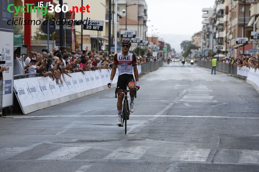 I battistrada, di buona lena, hanno insistito nell’azione ma all’ultimo passaggio tra i Colli di Pescara e Montesilvano, c’è stata un’ulteriore scrematura e il plotoncino di testa si è sfaldato causa la stoccata vincente di Trentin che si è presentato in solitaria tra gli applausi del caloroso pubblico di Piazza Duca degli Abruzzi, oltre a quelli del cittì della nazionale Davide Cassani e anche di un ospite speciale dal nome di Giulio Ciccone (che sta recuperando dall’infortunio dopo il ritiro alla Vuelta di Spagna).