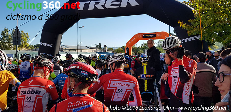 La partenza era prevista, come di consueto, per le 10 del mattino. Le previsioni meteo davano un cielo completamente sereno e temperature massime fino a 18-20°C. E così è stato, consentendo ai partecipanti di gareggiare su di un bellissimo percorso dal fondo ideale, anche se un po’ troppo “secco” e quindi smosso, ma sicuramente meglio di pioggia, fango e freddo che hanno flagellato l’edizione del 2018.