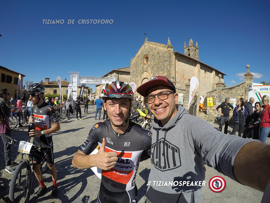 Chi vi scrive, essendo stato ospite dell’organizzazione in qualità di giornalista e narratore partecipante a questo evento in prima persona, essendo partito a fianco dei big ed avendo fatto il percorso lungo, ci tiene a sottolineare che quella di Monteriggioni è una gara adatta a tutti i livelli tecnici di preparazione, in quanto non ci sono discese “troppo” tecniche e allo stesso tempo ripide, anche se dal fondo sassoso e smosso.