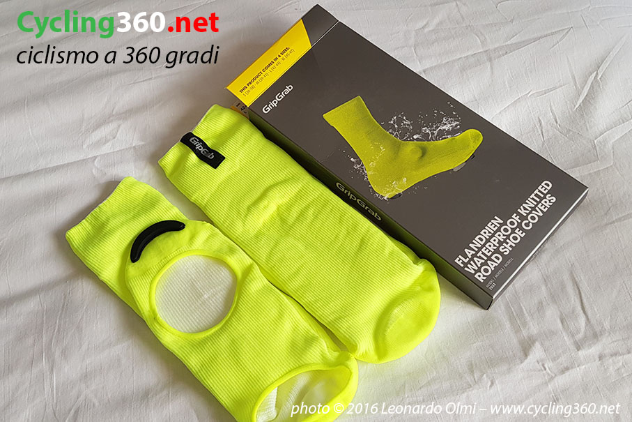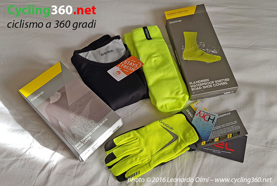 L’evoluzione sui materiali invernali, da dieci anni a questa parte, è stata notevole e a testimoniarlo sono gli oggetti di questo test, ossia i copri scarpe impermeabili da strada Flandrien a maglia, i guanti Cloudburst impermeabili Hi-Vis e la maglia da intimo Ride Termica a manica lunga prodotti da GripGrab. A chi si rivolgono? A chi vuole pedalare sempre d’inverno anche se piove e fa freddo, mattina o pomeriggio.