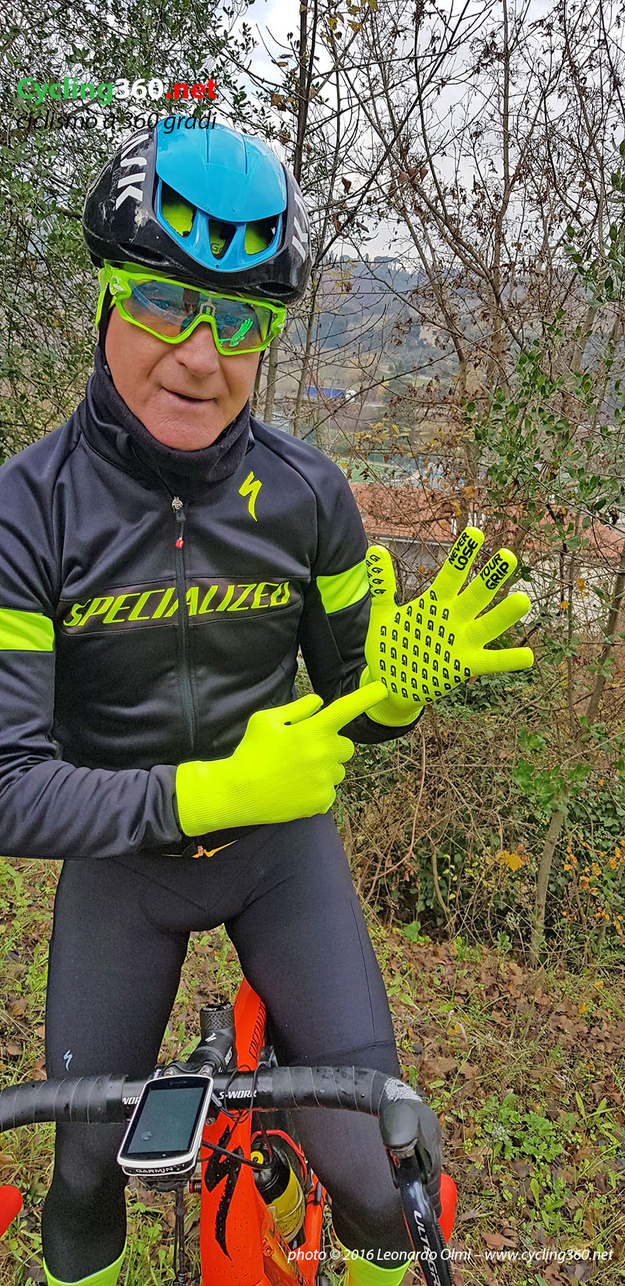 Leonardo Olmi testing GripGrab waterproof knitted gloves.