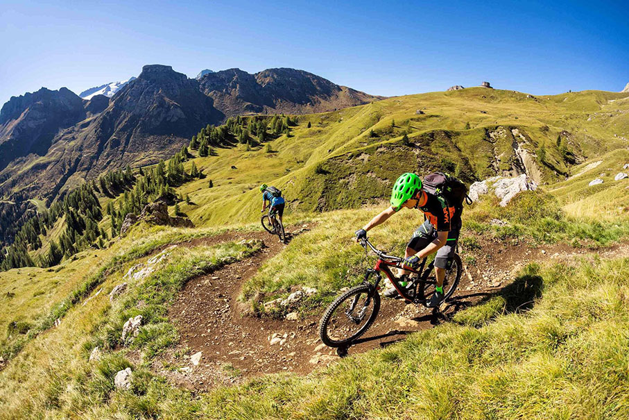 Mountain bike tour, percorsi gravity, servizi noleggio e guide di mtb, ma anche stazioni di ricarica per le e-bike caratterizzano la Val di Fassa, l’area del Trentino che ha sviluppato una elevata competenza nella disciplina. I suoi percorsi confluiscono tutti nel corso del torrente Avisio che nasce dal ghiacciaio della Marmolada: la montagna che osserva maestosa tutta la valle.