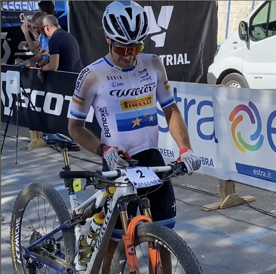 Nibali ha prima conquistato il Gpm stupendo e preoccupando i suoi avversari e poi è rimasto in un gruppetto di cinque fino all’arrivo. Il Campione Europeo Fabian Rabensteiner ha approfittato del suo ottimo stato di forma per allungare sul finale sul compagno di fuga, il Colombiano Diego Arias Cuervo. Allo stesso tempo Juri Ragnoli staccava Nibali che pagava lo sforzo iniziale e retrocedeva fino alla nona posizione accusando dolori sia alle braccia e che al collo per i quali non era allenato rispetto alla bici da corsa. Peccato per il Colombiano Leo Paez che era con il quartetto di testa ma è stato rallentato da una foratura.