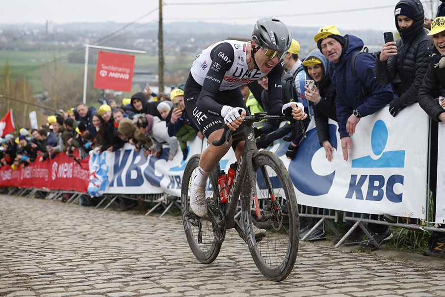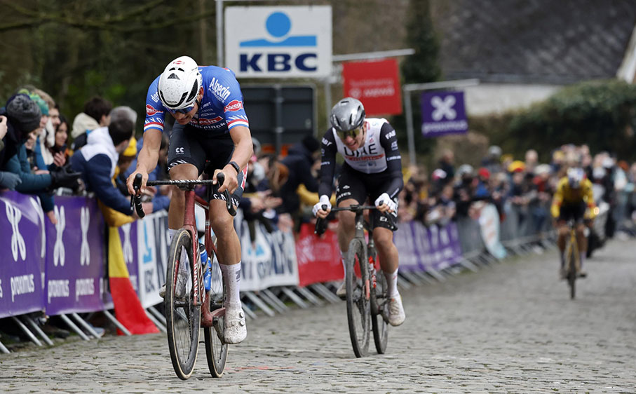 Lo sloveno ha sviluppato un ritmo infernale e questo si è rivelato addirittura troppo alto per Van der Poel, che ha dovuto rinunciare metro dopo metro su un Pogačar impressionante. Quest’ultimo si allontanò dall’Oude Kwaremont di una decina di secondi, ma un duro Van der Poel non volle darsi una vittoria e rimase a lungo a circa quindici secondi. In cima al Paterberg, il divario si era addirittura ridotto a dodici secondi, ma Pogačar, come corridore brevettato, non aveva intenzione di fermarsi. Solo due piloti erano eleggibili per la vittoria: gli inseguitori erano stati battuti.