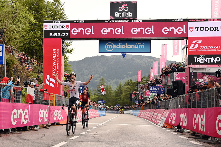 Monte Bondone, 23 maggio 2023 –João Pedro Gonçalves Almeida (UAE Team Emirates) ha vinto la sedicesima tappa del 106^ Giro d’Italia, la Sabbio Chiese-Monte Bondone di 203 km. Al secondo e terzo posto si sono classificati rispettivamente Geraint Thomas (Ineos Grenadiers) e Primož Roglič (Jumbo-Visma).