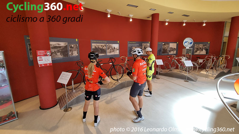 Una vista che ha mandato in estasi il gruppo di cileni. Così come la visita al Museo del Ciclismo dedicato a Gino Bartali, che tra l’altro era parente alla lontana di mio padre (nipote di sua nonna). Rivedere quelle bici eroiche è sempre una grande emozione che ci fa capire come e quanto sia cambiato il ciclismo e come fossero dei super eroi i tanti Gino Bartali, Fausto Coppi, Binda, Girardengo ecc. ecc.