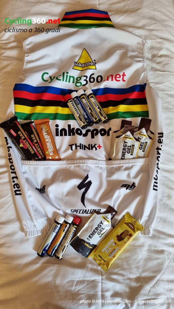 Come conseguenza di queste singole esperienze vissute direttamente sul campo di gara dal nostro inviato, dietro le quali si “nascondono” e si consumano quotidianamente ore e ore di allenamento, siamo in grado di indicarvi tutta una serie di prodotti da usare per affrontare un allenamento lungo o una Granfondo che abbiano almeno la durata di un minimo di 4 ore, un percorso dai 90 ai 130 km e almeno 2000 mt di dislivello positivo.