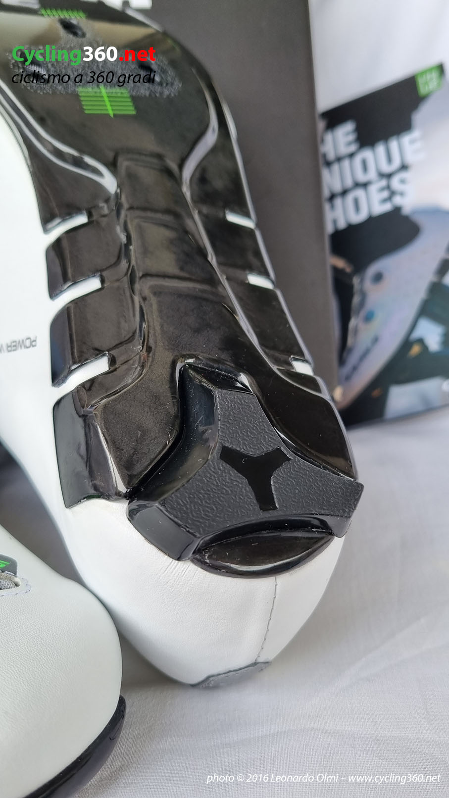 È molto bello notare che la suola in carbonio si presenta in maniera molto accattivante come design, ma allo stesso tempo ha anche una spiegazione tecnica. È stata progettata come una colonna vertebrale ed è veramente unica nel suo genere. Un tale design non lo si riscontra su nessun altre scarpe da ciclismo. La zona di alloggiamento della tacchetta è moto rigida, mentre la parte posteriore della suola in carbonio è leggermente flessibile, ma in maniera minimale: l’effetto di rimbalzo si traduce in maggior comfort, aumento del flusso sanguigno per favorire il ritorno venoso e minor sovraccarico di tendini e muscoli.