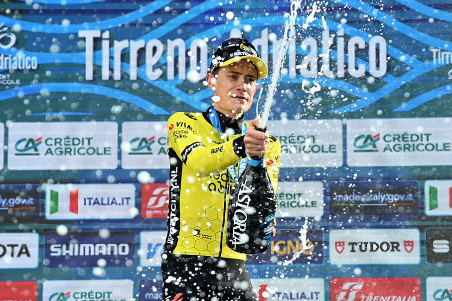 Valle Castellana, 8 marzo 2024 – Jonas Vingegaard (Team Visma | Lease a Bike)ha vinto la Torricella Sicura-Valle Castellana, quinta tappa della Tirreno-Adriatico Crédit Agricole, di 144 km. Juan Ayuso (UAE Team Emirates) e Jai Hindley (Bora – Hansgrohe) si sono piazzati rispettivamente al secondo e terzo posto.Jonas Vingegaard (Team Visma | Lease a Bike) è anche la nuova Maglia Azzurra di leader della Classifica Generale.