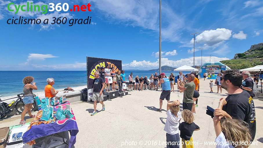 Mercoledì 22 maggio, è andata in scena l’ultima tappa, quella della bellissima Portoferraio, famosa per le sue fortezze e legata alla storia con la casa di Napoleone Bonaparte che dopo essere stato incoronato imperatore, nel 1804, ricevette con un plebiscito fra gli elbani anche il potere sull’isola. Una tappa caratterizzata dalla frazione di nuoto che si svolgeva con un unico giro sulla bellissima spiaggia de Le Ghiaie. Poi, una volata usciti dall’acqua si correva verso la T1 dove dopo aver allacciato bene il casco, sotto il controllo vigile degli scrupolosi ma ottimi Giudici di Gara Fitri, si inforcava la bici (meglio se avevamo anche tolto la muta) e si andava ad affrontare due giri, con andata e ritorno che ci portava verso Capo d’Enfola. Tragitto fatto di mangia e bevi abbastanza duri, con pendenze anche fino all’8-9 %, che ancora una volta ci deliziava di panorami mozzafiato lungo la costa con le famose Spiagge Bianche. Quindi si tornava in T2 e ci si mettevano le scarpe da corsa per affrontare i due giri di 2,5km su e giù dalla fortezza.