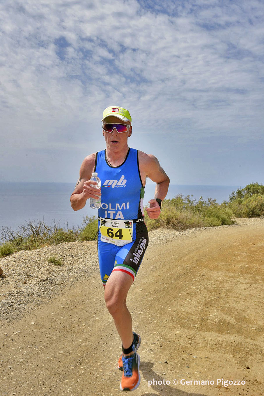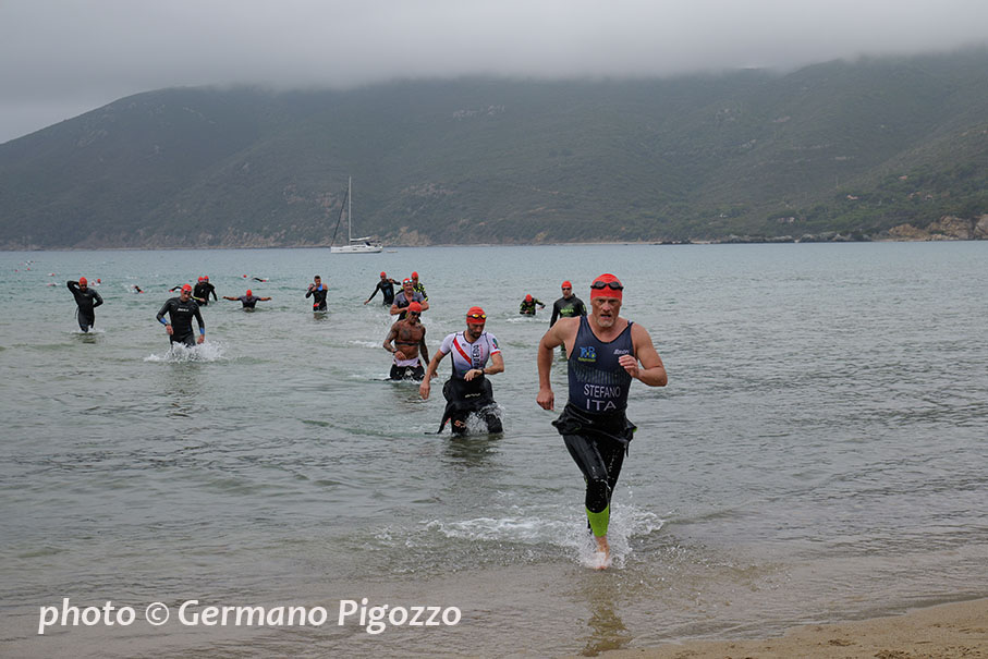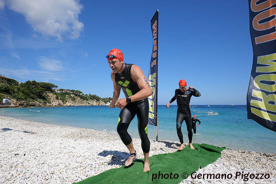 Come prima tappa di sabato 18 maggio, l’organizzazione aveva giustamente scelto quella di Capoliveri, che prevedeva la parte dedicata al nuoto direttamente sulla spiaggia di Pareti di fronte allo Hotel Stella Maris, con due giri per un totale di 750mt. Una volta usciti dall’acqua si trovava la T1 da cui si partiva con la bici in salita per compiere 2 giri di 10km impegnativi di un circuito su strada che includevano la salita dell’Innamorata, con punte fino al 15%, per poi proseguire su sterrato fino al Museo delle Miniere dove era posto il giro di boa e dove al secondo giro si trovava la T2 da cui partiva un giro unico di andata e ritorno per un totale di 5km per la frazione Run. Ancora una volta una tappa dura ma divertente, resa epica dallo sterrato, un’idea tirata fuori dall’inesauribile cilindro di Renzao Straniero che ogni volta se ne inventa una diversa. Non a caso gli atleti ritornano sempre all’Elba poiché anche se le località sono sempre quelle i percorsi e le tappe vengono quasi sempre variati o modificati ogni anno.