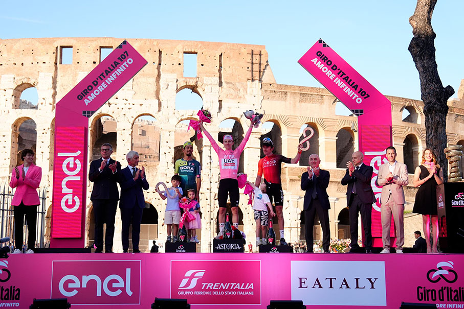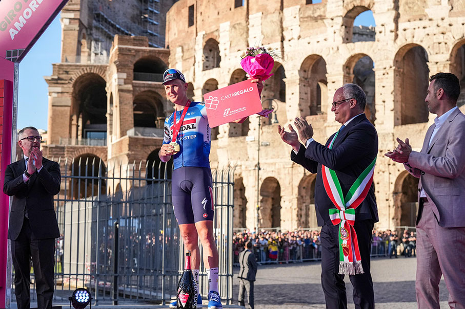 Roma, 26 maggio 2024 – La Città Eterna ha fatto da cornice al Grande Arrivo di un Giro d’Italia che verrà ricordato per anni, con l’incoronazione finale di Tadej Pogacar, in Maglia Rosa dal secondo giorno di gara, e di un successo mai in discussione. Sei vittorie di tappa, di cui cinque con addosso il simbolo del primato, e i diretti rivali in classifica generale relegati a 9’56”, Daniel Martinez, e 10’24”, Geraint Thomas. Roma è stata anche il teatro dell’ultima frazione, uno scontro tra i velocisti da cui è uscito vincitore Tim Merlier, che ha pareggiato i conti con uno sfortunato Jonathan Milan. La Maglia Ciclamino, frenata da un problema meccanico all’inizio dell’ultimo giro, è riuscita a rientrare in gruppo a 3 km dall’arrivo e a disputare la volata, chiudendo alle spalle del belga e davanti a Kaden Groves.