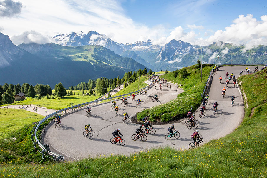 Campolongo, Pordoi, Sella, Gardena, Giau, Falzarego e Valparola: un carosello magnifico da affrontare immersi nel silenzio e nello splendore di un paesaggio unico al mondo. E alla fine della corsa, il ricordo per ogni partecipante rimarrà indelebile.