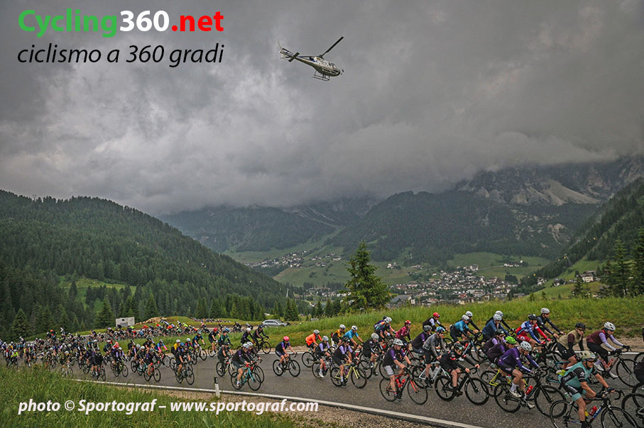 Una volta sceso il Gardena, avremo completato il cosiddetto Sella Ronda; pochi vogliono girare verso l’arrivo del percorso Classico, concludendo qui la loro Maratona. I più proseguono alla volta del Medio e del Lungo, anche perché non vogliono perdersi il tifo di parenti e amici che per più di due ore li hanno attesi a Corvara e sui tornanti del Campolongo. Per poi passare a Falzarego e Valparola se si opta per il medio, oppure a Santa Lucia a cui segue il mitico Passo Giau se si opta per il lungo. Sicuramente, il lungo è un percorso che necessita una buona preparazione, ma se lo si affronta con lo spirito cicloturistico, anche le fatiche del Giau verranno alleviate dallo splendido paesaggio che ci circonda. Purtroppo coloro che quest’anno hanno optato per i percorsi Medio e Lungo, non si sono potuti godere i panorami che di solito contraddistinguono questi due percorsi, in quanto a farla da padroni erano le nuvole grige cariche di pioggia e temporali. Per fortuna non era troppo freddo, dai 12 ai 16 °C e questo ha reso possibile per i più terminare la Maratona seppur infreddoliti.