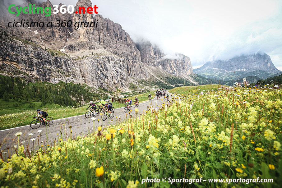 I rumori sono solo quelli dei copertoni che scorrono sull’asfalto, delle pasticche che pinzano i freni a disco e delle catene che scendono su e giù per il cambio, nient’altro! Nessun rombo stonato e straziante di auto e moto che sfrecciano distorcendo la musica che, invece, dovrebbe esser degna di un Paradiso come quello delle Dolomiti. Domenica 7 luglio sui passi dolomitici si è visto transitare solo un mezzo di locomozione, la bicicletta, che con gli anni è diventata uno sport appassionante e uno stile di vita, come quello di oggi per i virtuosi della sostenibilità ambientale.