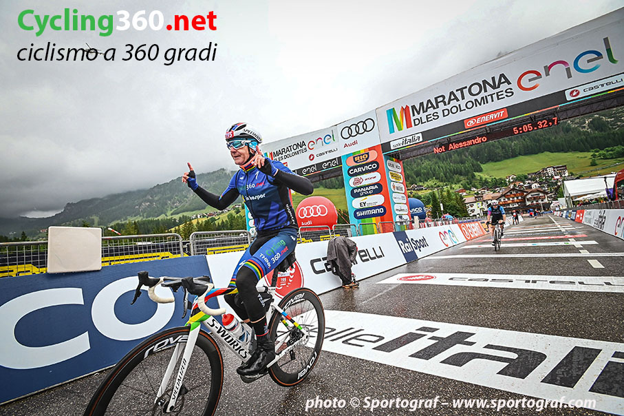 Ed è da questo momento in avanti che, immediatamente e magicamente, dimentico il disagio della sveglia “notturna”, del freddo per scendere fino a La Villa e dei sacrifici fatti negli allenamenti per poter affrontare la Maratona. Da qui in poi si scatena il pensiero rivolto all’Umanità e alla Natura, che vogliamo continuare a vedere così come sono per sempre, preservandole e rispettandole per poterci ancora pedalare intorno. Dallo start in poi sarà tutto un susseguirsi di gioie ed emozioni fino all’arrivo. Non mi pento di niente ed anzi, inizio subito a pensare “speriamo di poterla rifare anche il prossimo anno”. Un pensiero che si amplifica sempre di più ogni volta che con l’auto lascio alle spalle le guglie delle Dolomiti nel rientro verso casa.