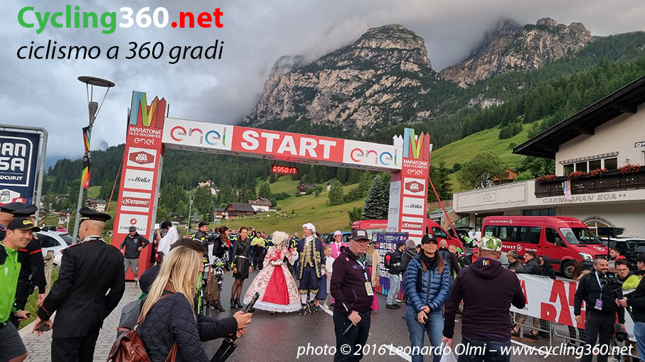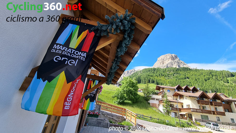 Come ripetiamo ogni anno, tutti vogliono essere alla Maratona, perlomeno una volta nella loro vita, e tutti quelli che hanno la fortuna di esserci, dopo quella volta vogliono ritornarci, coinvolgendo tutta la loro famiglia, i loro amici ciclisti e prenotando con un anno d’anticipo l’albergo o il garnì in uno dei tanti e incantevoli paesi dell’Alta Badia. Corvara è sicuramente la più gettonata in quanto, oltre che ad esserci l’arrivo, è anche la meglio posizionata logisticamente parlando. Ma poi, ovviamente, ci sono anche Colfosco, La Villa (dove si trova la partenza), San Cassiano, Badia (dove si ritirano i pacchi gara e viene allestita la zona Expo), Pedraces, Arabba e via via tutti gli altri; dei paesi meravigliosi che non hanno bisogno, come del resto tutte le Dolomiti, di presentazioni.