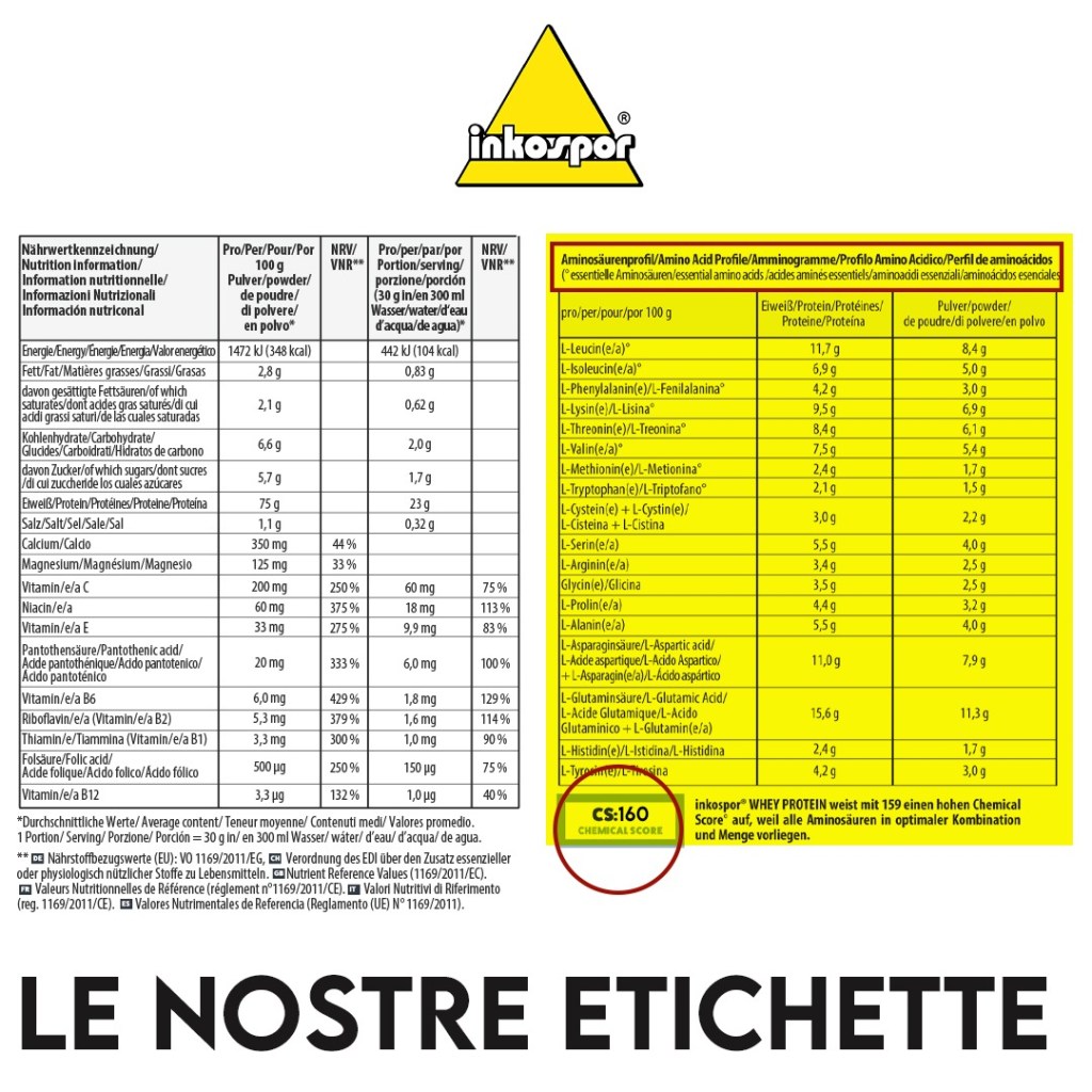 A questo punto è d’obbligo porsi una domanda, ossia come si determina la qualità di una proteina? Dal suo Chemical Score. Tanto più è alto questo valore tanto sarà più alta la qualità della proteina stessa. E le etichette di Inkospor lo dimostrano riportando tutti i dati in maniera chiara. Dando un’occhiata alla grafica qui sotto, possiamo tranquillamente affermare che le proteine prodotte da Inkospor non hanno rivali.