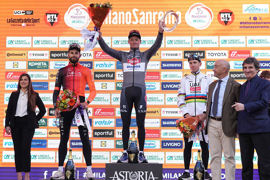 Tadej Pogacar, terzo classificato, ha detto: “Quello che avete visto era il nostro piano di gara. Tutto il team ha reso al massimo, e anche io non potevo fare di più. Sarei stato fin troppo ottimista nel pensare di fare il vuoto sulla Cipressa, però ero convinto che insieme a Ganna e Van der Poel saremmo stati imprendibili per gli inseguitori. Nel finale credo che tutti e tre volessimo anticipare lo sprint, Mathieu è stato troppo forte. Chapeau”.