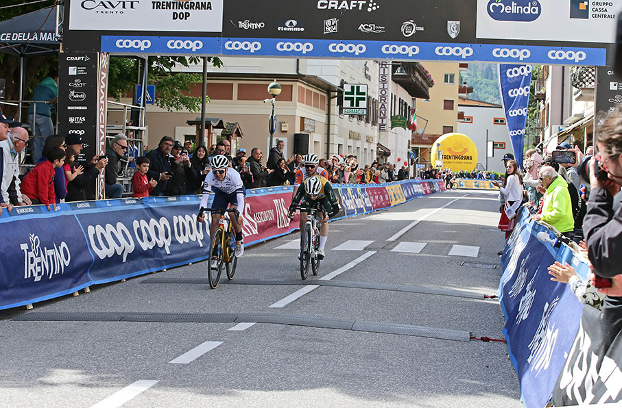 Per la manifestazione che è tappa dei blasonati circuiti Alé Challenge, Nalini Road Series e Cycling Italia applausi ed entusiasmo non sono mancati nemmeno per i concorrenti del percorso mediofondo: al maschile Davide Pantano, Matteo Freddi e Matteo Fontanelli dopo 80 km e scalate ‘a tutta’ ai Passi Costalunga e Pampeago, hanno avuto le energie anche per sprintare e siglare con una volata al cardiopalma il podio sul rettilineo di Predazzo. Il padovano Pantano ha preceduto con il colpo di reni decisivo i colleghi Freddi e Fontanelli. Al femminile sfilata in solitaria per Elisa Leardini, con la riminese (sostenuta da papà Massimo) che ha staccato di forza le avversarie regalandosi una vittoria davanti a Fabiana Ugotti e Anna Cadorin. Tifo a profusione per tutti i concorrenti, fra i quali si segnalano anche l’olimpionico Cristian Zorzi, i giornalisti sportivi Giovanni Bruno e Francesco Pierantozzi e il poliedrico atleta, oggi inviato speciale TV, Pietro Dutto.