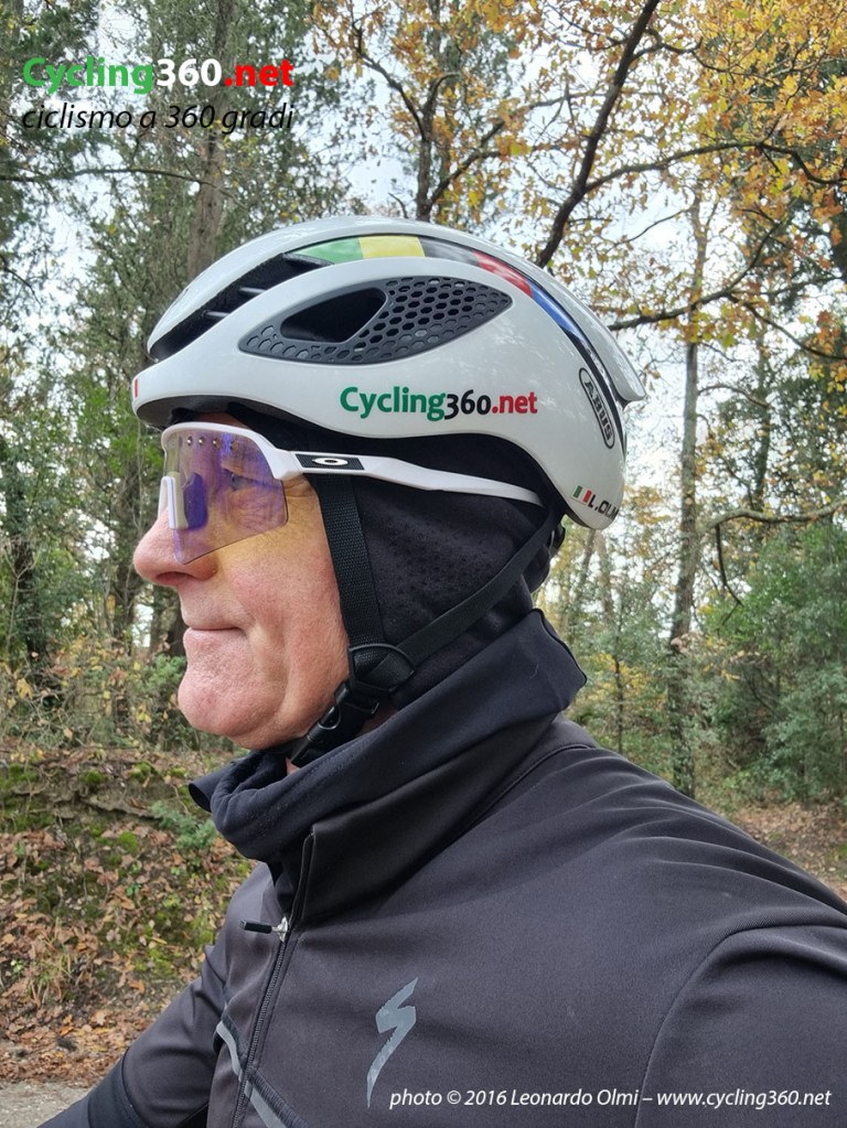 Non è materiale antiacqua, ma se indossato con un casco abbastanza chiuso (come ho io in foto), di quelli da velocisti giusto per intenderci, ossia con poche aperture sulla parte superiore e non prettamente estivo, in caso di pioggia sarà il casco stesso ad evitare il passaggio dell’acqua.